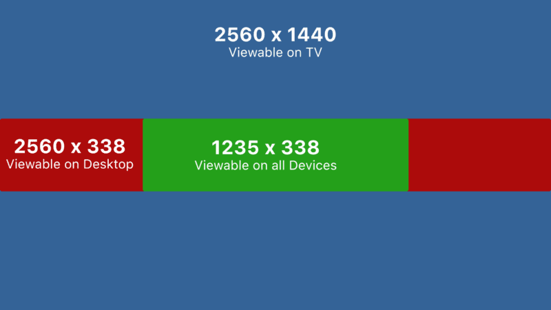 Use 2560 × 1440 px for the full banner, and keep key text and logos inside the central 1546 × 423 px safe area. This setup still works across TVs, desktops, and phones.